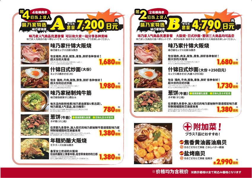 菜单包括扇贝黄油酱油和tonpeiyaki。