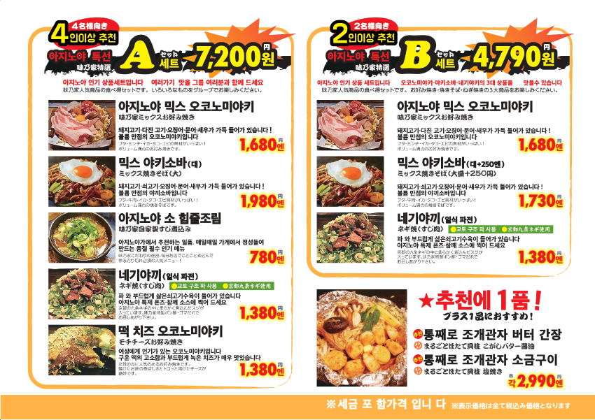 Ajinoya 본점에서 제공하는 메뉴입니다. 자세한 내용은 각 카테고리에서 계속하십시오.