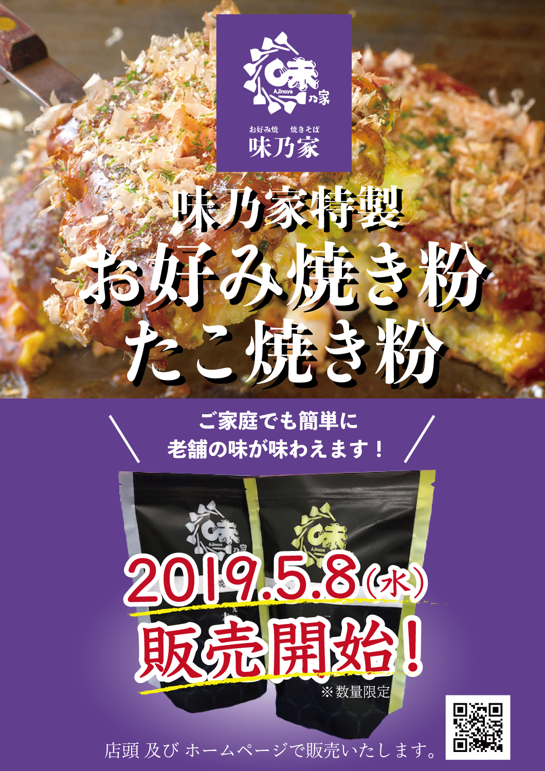 『味乃家特製 お好み焼き粉』『味乃家特製 たこ焼き粉』の販売を開始します。