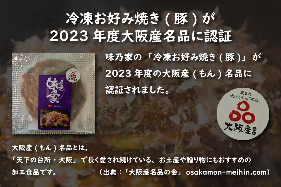 味乃家の「豚のお好み焼き」が2023年の大阪もん名品 (osakamon-meihin.com) に選ばれました。